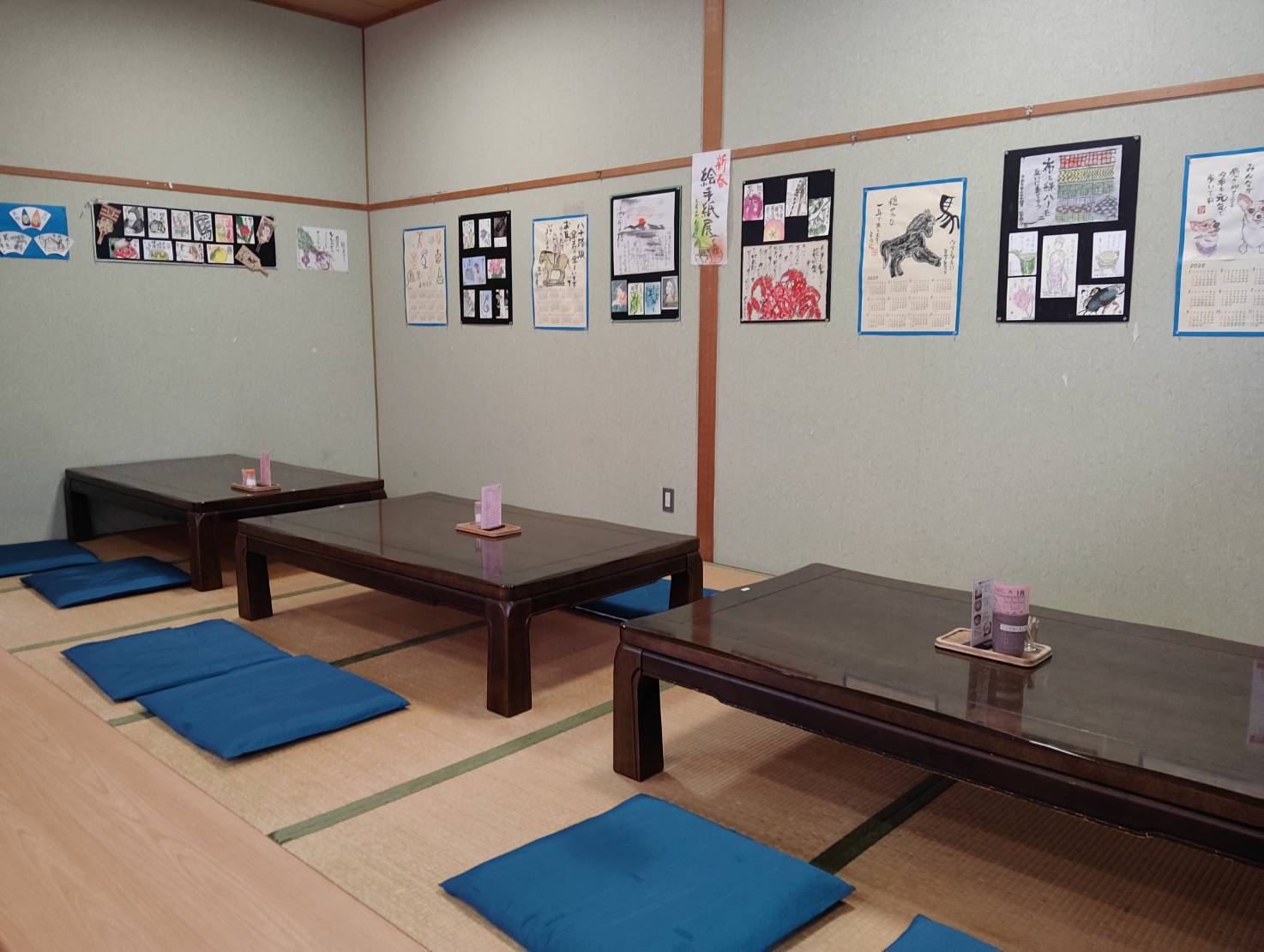 ぎゃらりぃ ぽぷり ぎゃらりぃ ぽぷりでは福祉会館の教室やサークル活動で作っている作品など、皆様からの作品をおかりして、展示させていただいております。1か月から2か月毎に作品を入れ替えて、ランチタイムやコーヒータイムにぽぷりをご利用のお客様に楽しんでいただいております。寺尾上町わかばの会 様の作品展示期間:2026年1月6日(火)~新春絵手紙展新春にふさわしい華やかな作品です。ぜひご覧ください。 FacebookXCopy